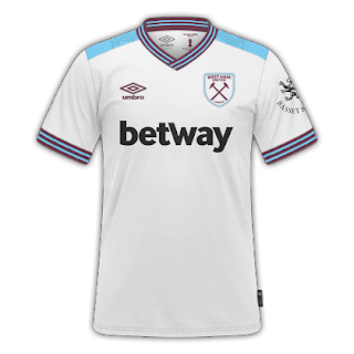 Descrição: Essas são as camisas 2019 / 2020 do West Ham United Football Club da cidade de Londres, Inglaterra. A Umbro fez camisas mais ousadas que as da temporada passada nos templates mundiais da marca. A Home é grená com azul claro na parte superior da camisa, gola e nas mangas, riscos em azul um pouco mais escuro está presente no peito na região azul clara. A Away é branca com gola "V" e punhos em grená e azul claro em riscas, omoplata em azul claro a completa. A Third é azul escuro com grafismo em um tom mais escuro na parte frontal, detalhe em tom de roxo estão presentes em recortes da gola e nos ombros. O West Ham está na 16ª colocação e perto da zona da degola. Boa sorte Hammers! Fotos de Mantos do Futebol.